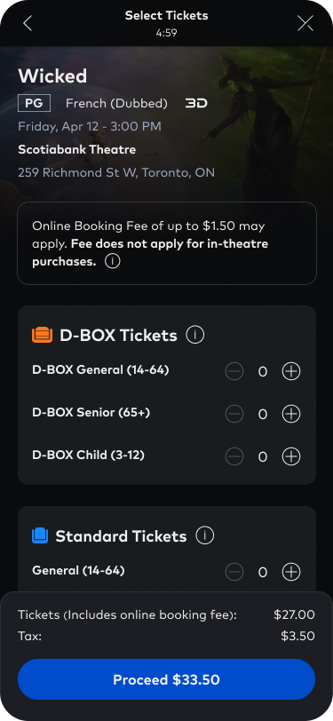 One of my first projects when I joined the Cineplex product design team was re-redesigning the ticketing flow, which had already launched its MVP. With ticket purchasing as the core user goal, I prioritized a modern, intuitive design that simplifies our guests' journies.